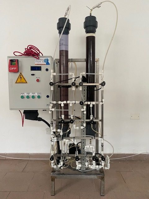 - Qualitative and quantitative tests with pilot plant with 3/5 liter resin columns aimed at defining the cycle length, regenerative efficiency, consumption of reactants for regeneration, eluate volumes and consequent sustainability.